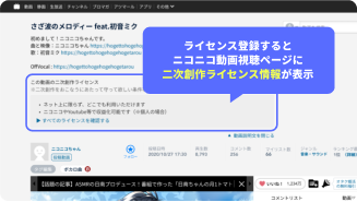 ニコニ・コモンズでは、ネットクリエイターが安心、便利に二次創作できる「ライセンス」機能を提供しています。