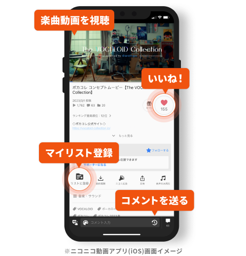 気になる楽曲を視聴、いいねする、マイリスト登録、コメントするなどアクションを起こして動画を応援することができます!