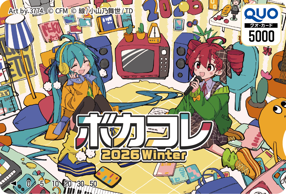 ボカコレ2026冬の投稿曲を「ニコニコ動画・ニコニコ動画アプリ・ボカコレアプリ」、いずれかで3曲以上視聴した人の中から抽選で10名様に、5,000円分の「ボカコレ2026冬オリジナルQUOカード」をプレゼントします!
